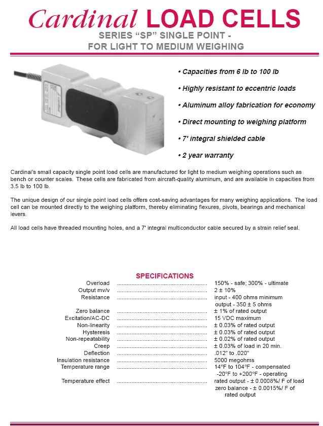 | 產(chǎn)品名稱:Cardinal SP 單點式稱重傳感器(load cells) |