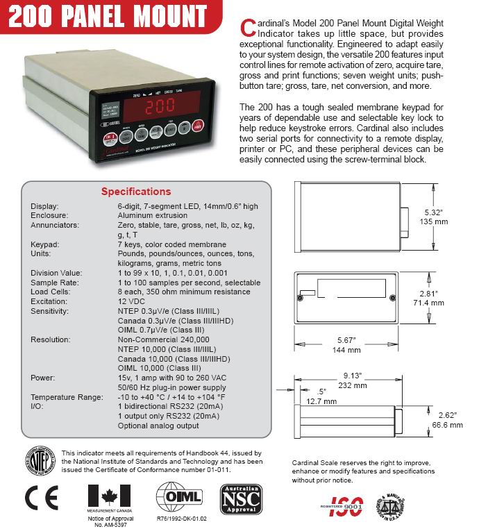 | 產(chǎn)品名稱(chēng):Cardinal 200 稱(chēng)重顯示儀表(indicator) |