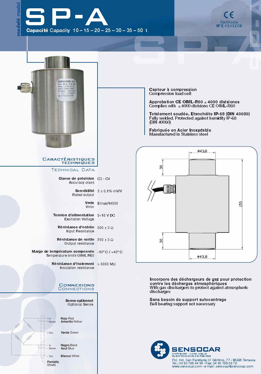 西班牙Sensocar稱重傳感器及稱重儀器系列