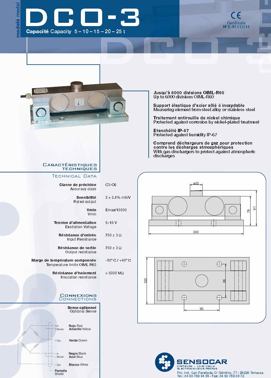 Sensocar DCO-3 壓式稱重傳感器(load cells)