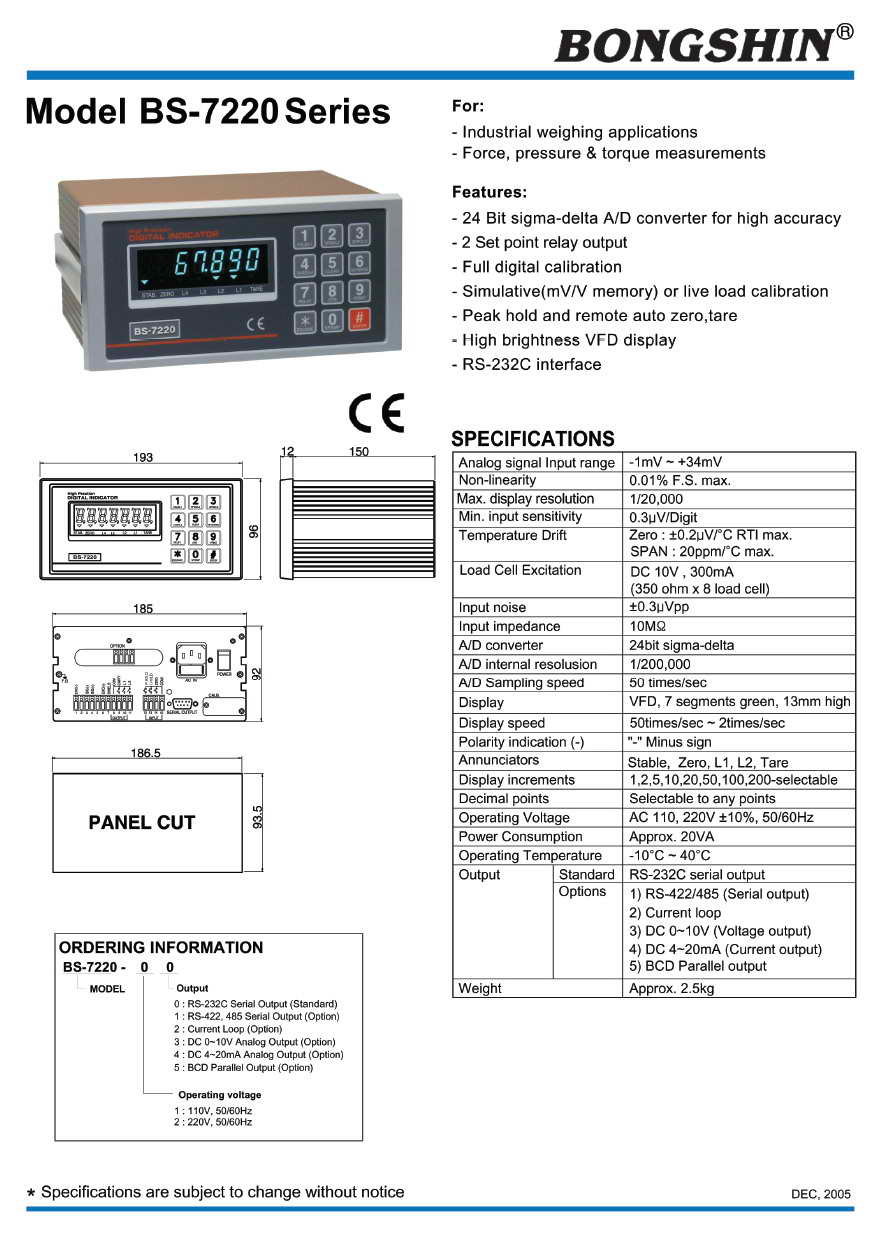 | 產(chǎn)品名稱:BS-7220 顯示儀表(digital indicator) |