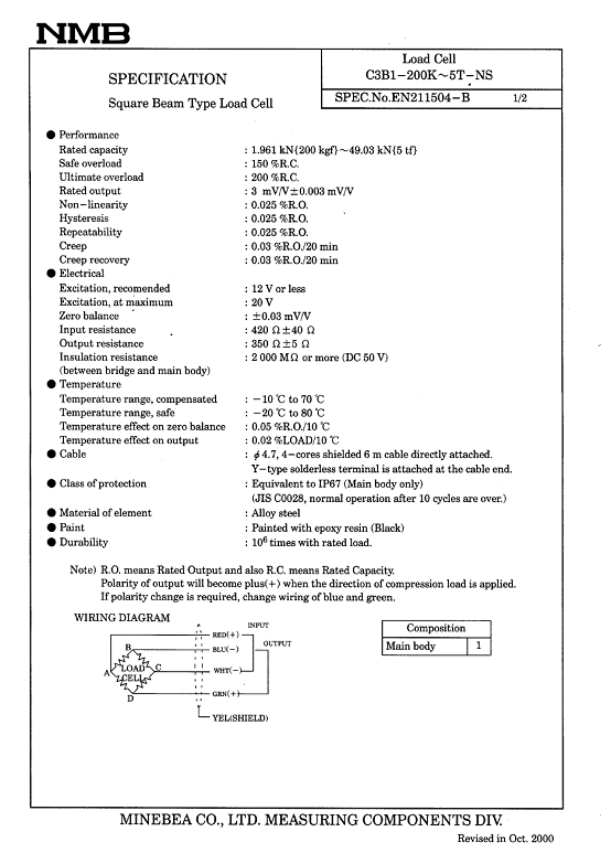 C3B1 NMB稱(chēng)重傳感器(load cells) |