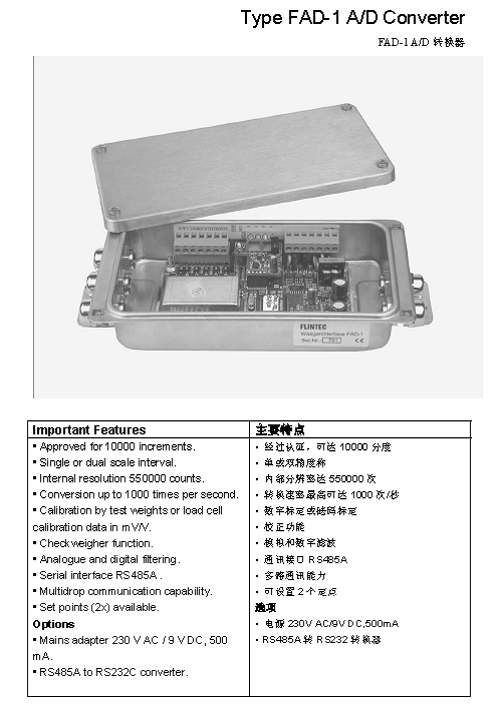 | 產(chǎn)品名稱:FLINTEC FAD-1 A-D轉(zhuǎn)換器(A/D Converter) |