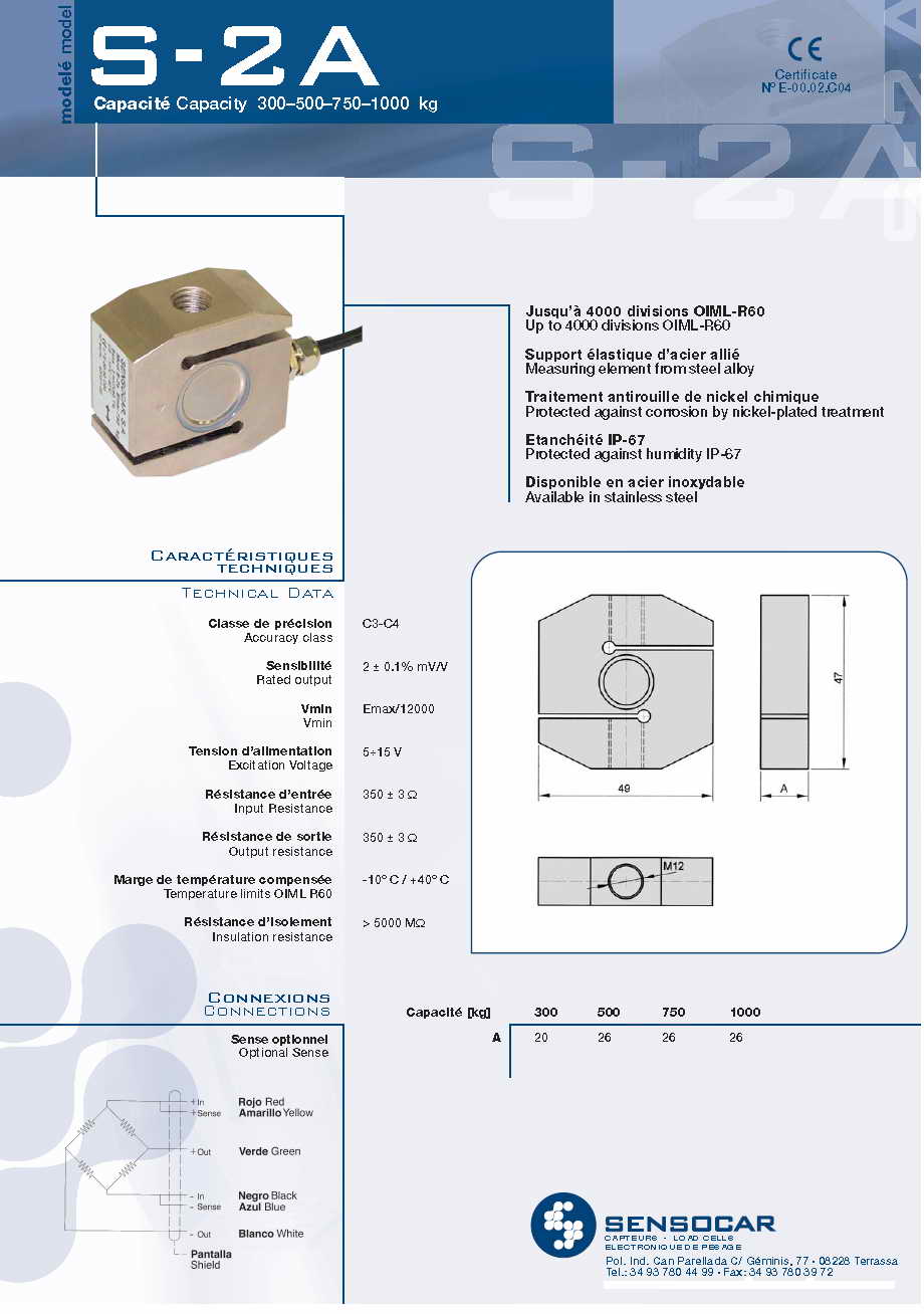 | 產(chǎn)品名稱:Sensocar S2-A S型稱重傳感器(load cells) |
