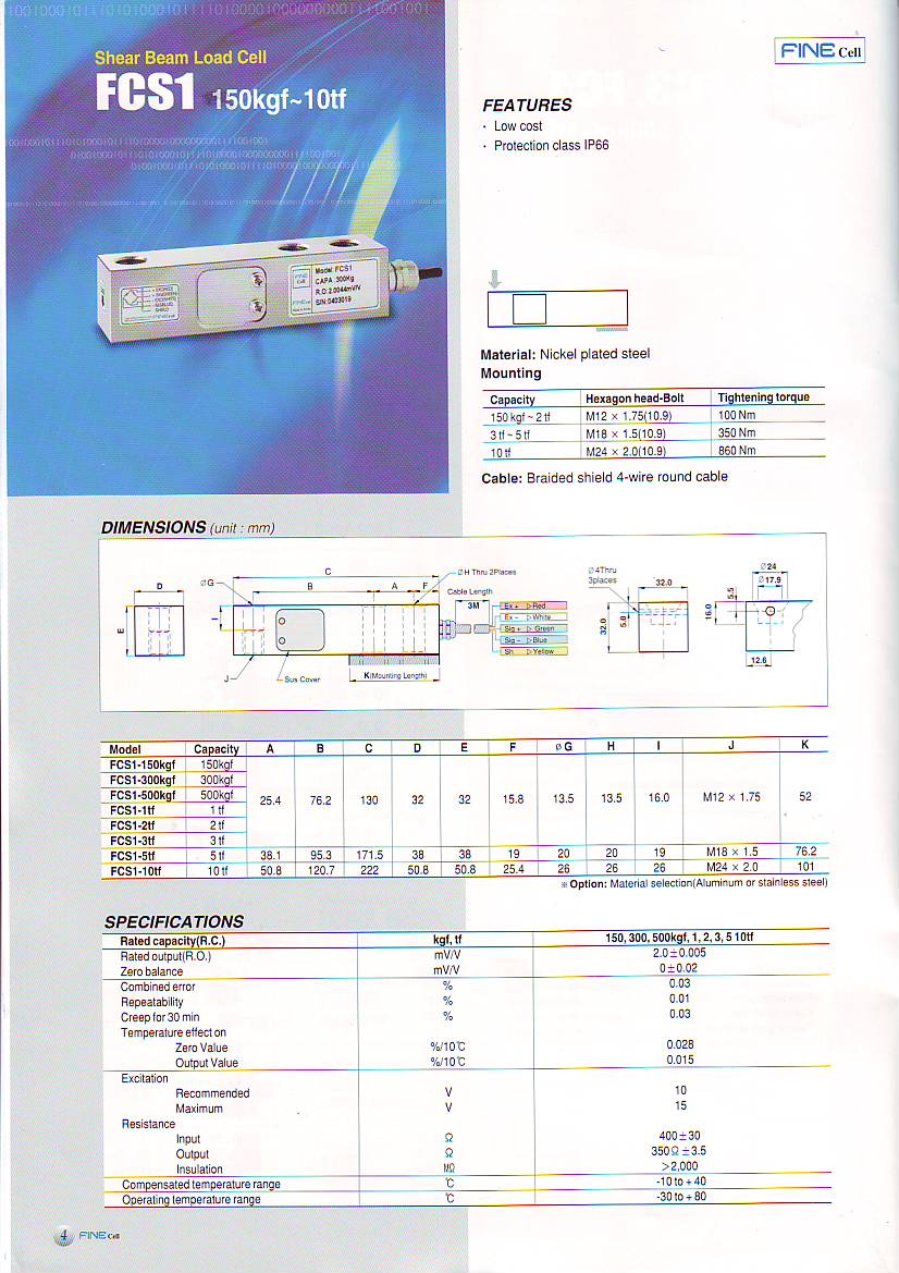 Fine FCS1 懸臂梁式傳感器(load cells)