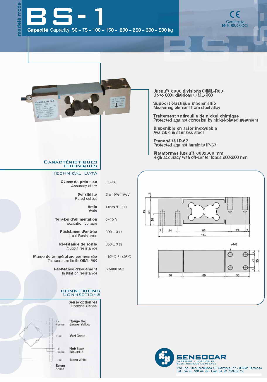 Sensocar BS-1 單點式稱重傳感器(load cells)