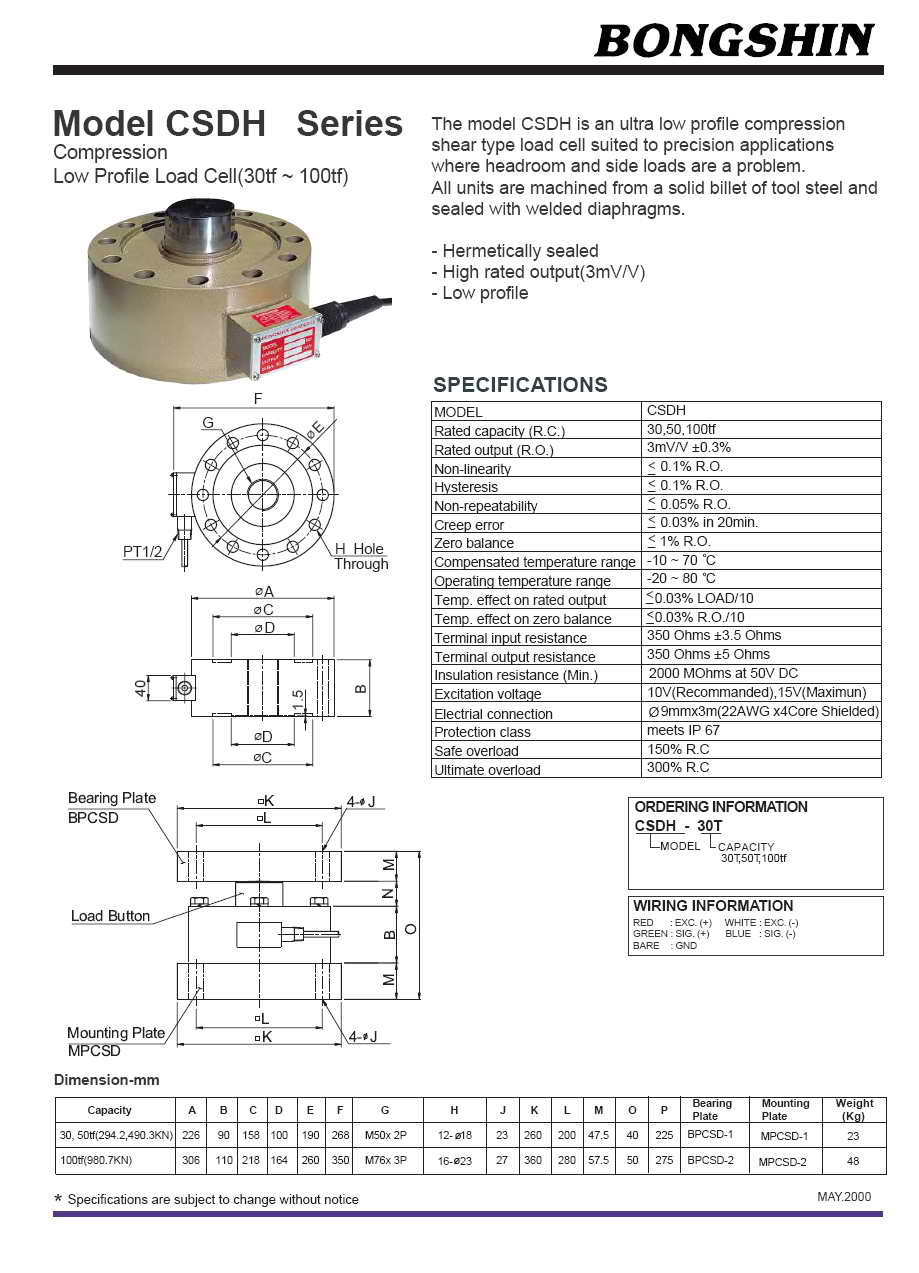 | 產(chǎn)品名稱:CSDH 壓式稱重傳感器(load cell) |