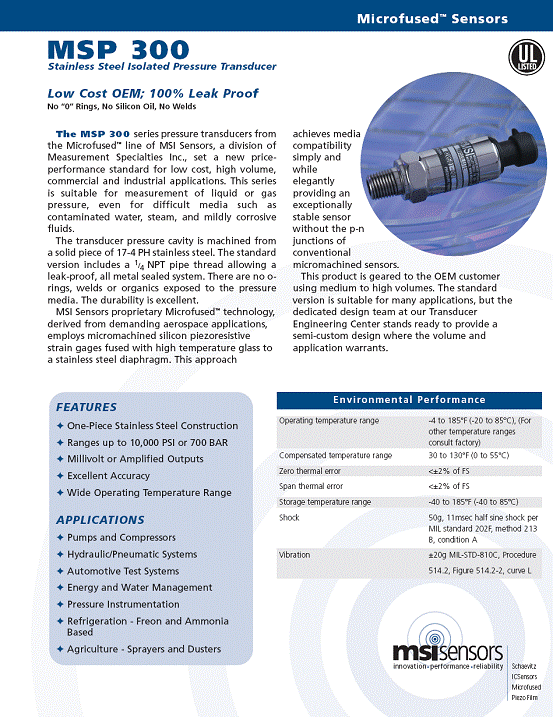 | 產(chǎn)品名稱:MSP-300 壓力傳感器(Pressure transducer) |