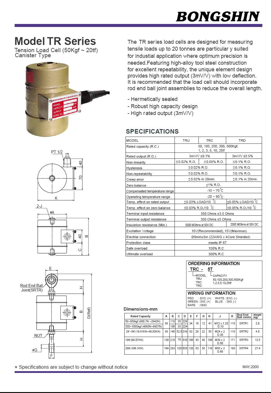 | 產(chǎn)品名稱:TR 拉式稱重傳感器(load cell) |