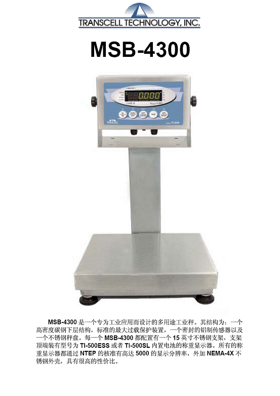 | 產(chǎn)品名稱:Transcell MSB-4300 多用途工業(yè)秤(scales) |