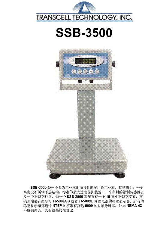 | 產(chǎn)品名稱:Transcell SSB-3500 工業(yè)秤(scales) |