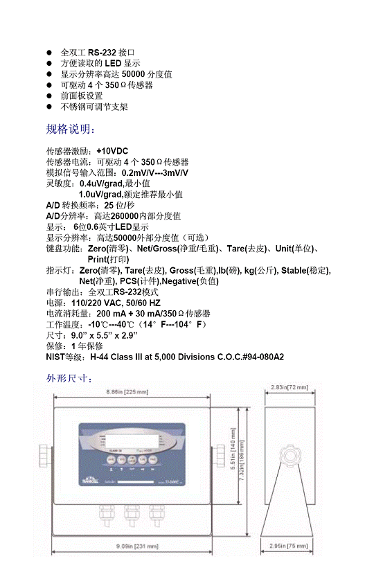 | 產(chǎn)品名稱:Transcell T1-500E-SS 耐用稱重顯示儀表(Indicator) |