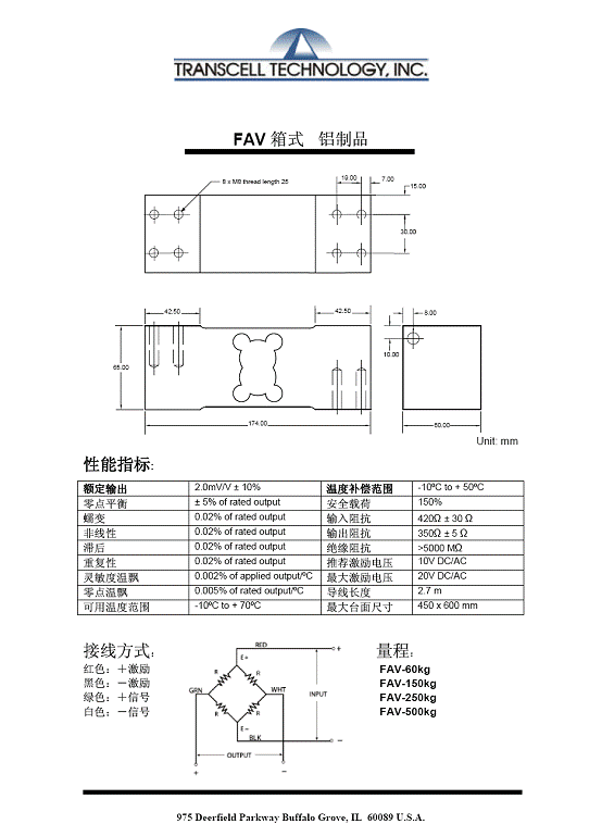| 產(chǎn)品名稱:Transcell FAV 箱式稱重傳感器(load cells) |