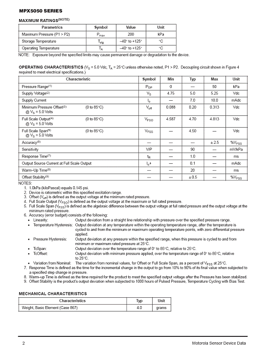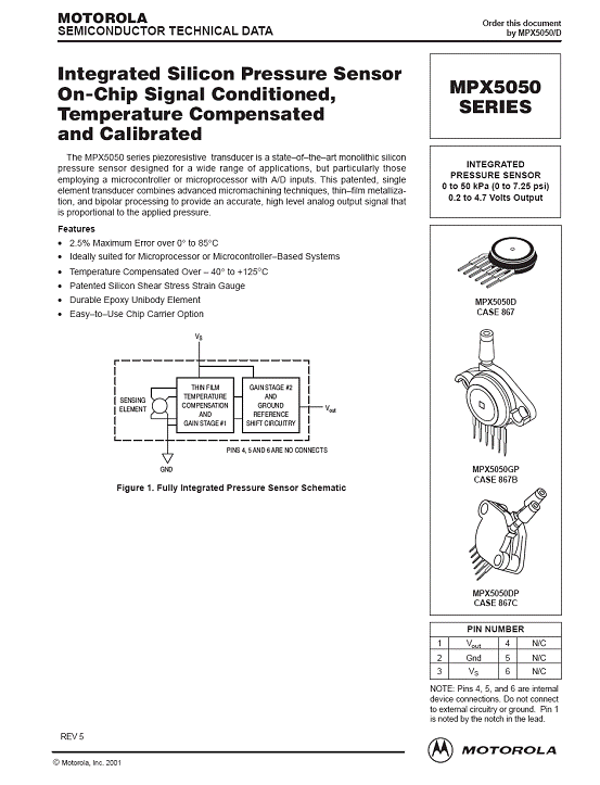 | 產(chǎn)品名稱:MPX5050 氣壓傳感器(sensor) |