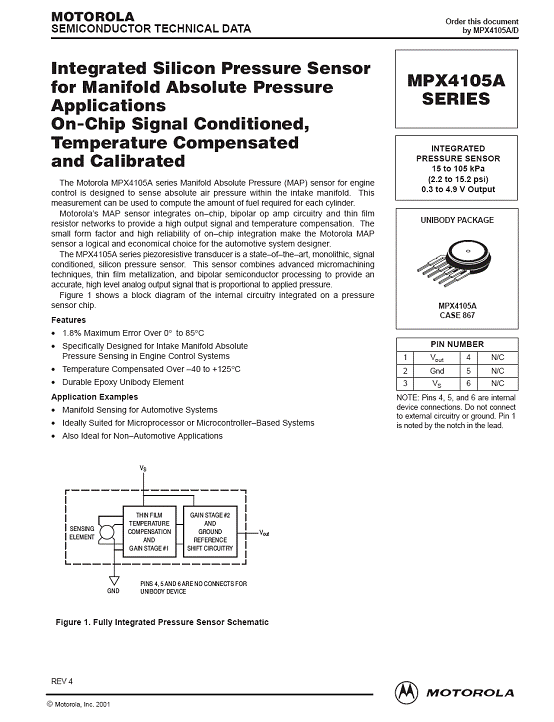 MPX4105A 氣壓傳感器(sensor)