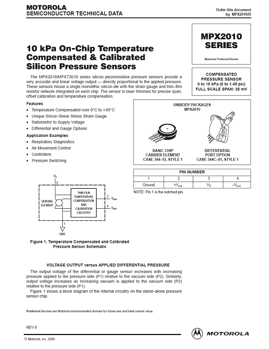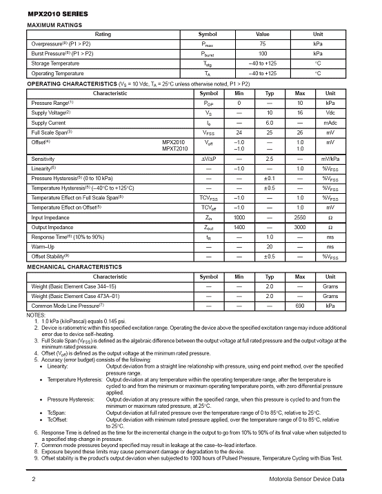 MPX2010 氣壓傳感器(sensor)