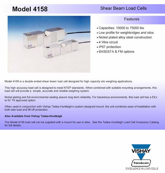 | 產品名稱:Tedea 4158 稱重傳感器(load cells) |
