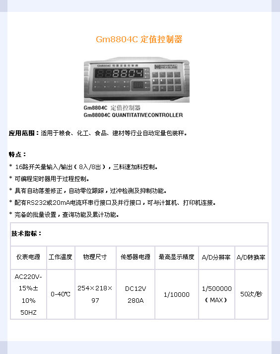 | 產(chǎn)品名稱:Gm8804C 定值控制器(Indicator) |